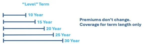 Level term coverage has stable or “locked-in” premiums for the term period you purchase. These come in 10, 15, 20, 25, or 30-year options. In essence, these policies become “cheaper” over time due to inflation. For example, a $200/month premium today on a 30-year policy will still be $200/month 29 years later, but the value of $200 will be less at that time. Level term is typically the best solution for doctors and their families.